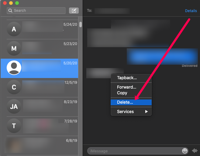 - Open the messaging application on your Mac. Navigate to the message thread on the left-hand side.
