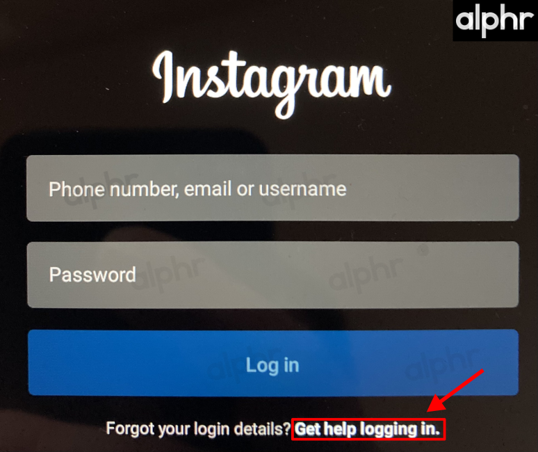 - Tap “Get help logging in” under the “Login” button.