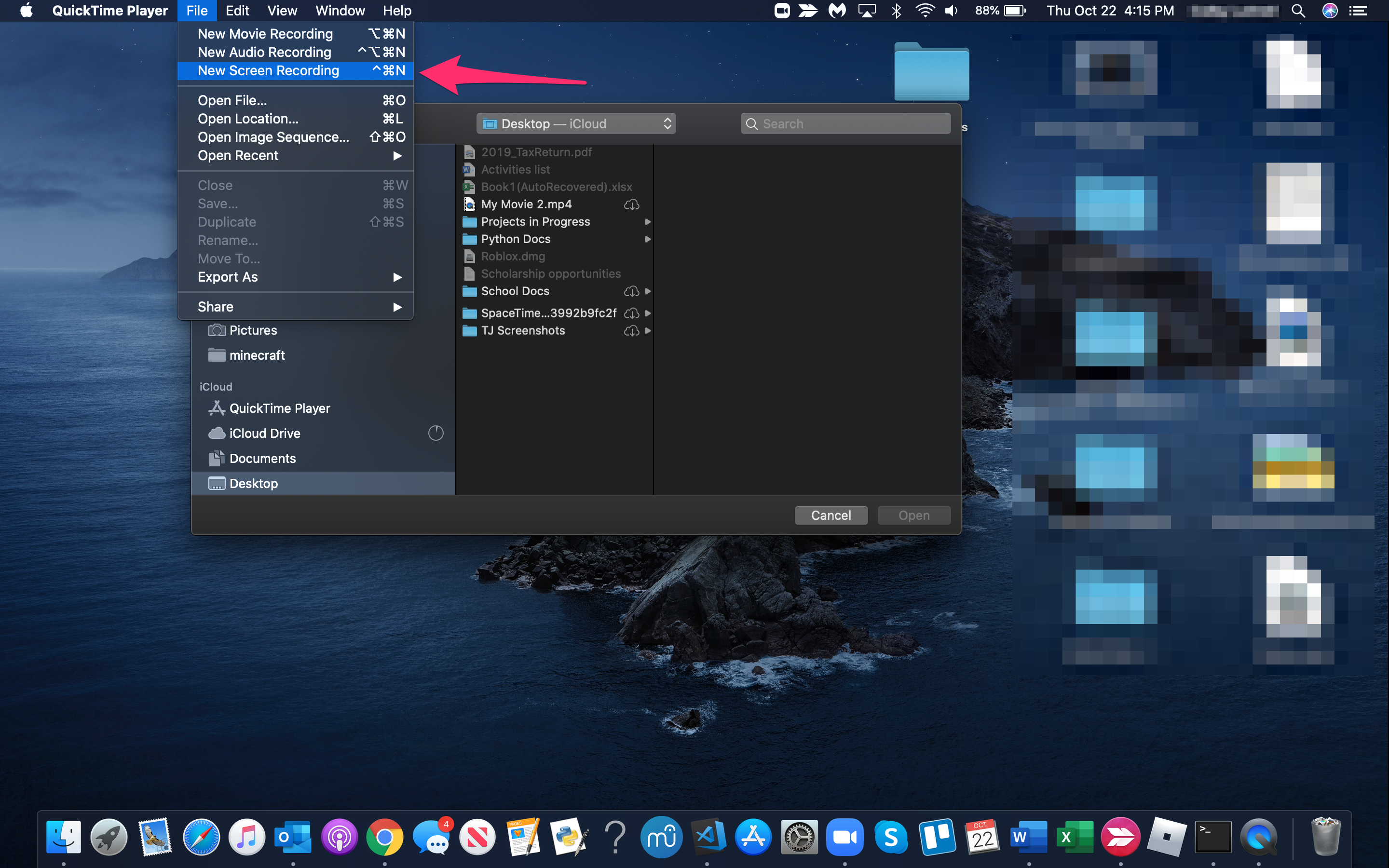 - Select QuickTime to record the entire screen or drag and drop to record just a portion of it.