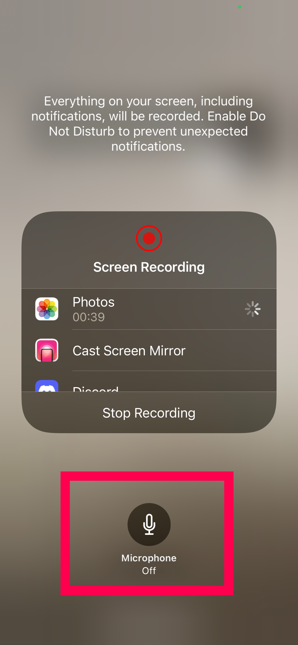 At any point during your call, go back to the Control Center and long-press the Screen Record icon. Here, you’ll see a Microphone icon. Tap it so that it says Microphone On.