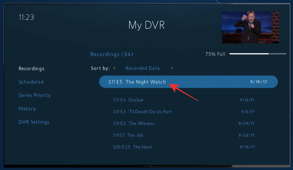 Once you have completed watching an episode from your recording, you can delete it so that you can preserve space for future recordings.