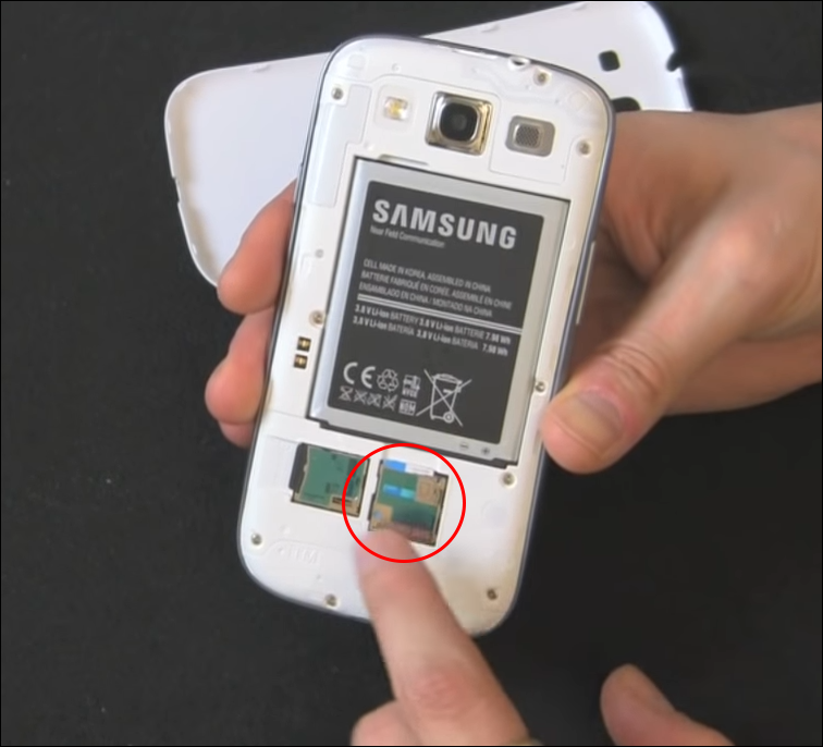 Some old Samsung smartphones have removable batteries. In some instances, the SIM slot is covered by the battery. Others have the slot beside the battery.