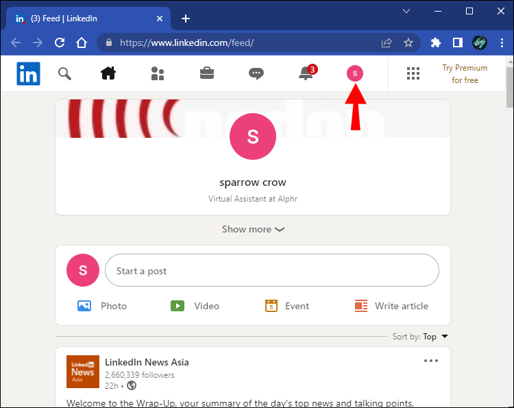 - Go to LinkedIn and open your profile by clicking your icon on the main feed.