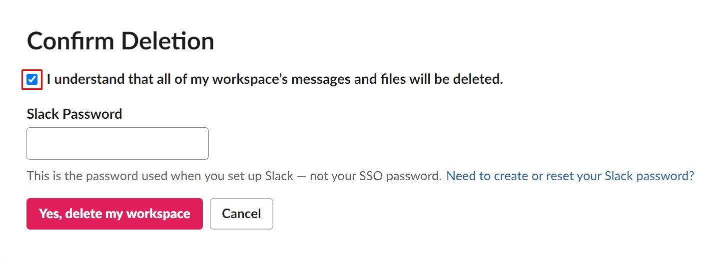 Understand that only messages and files that were sent in public channels will be exported. The private channel, direct message, and editing/deletion logs aren’t included. Before proceeding with the workspace deletion process, backup your data.