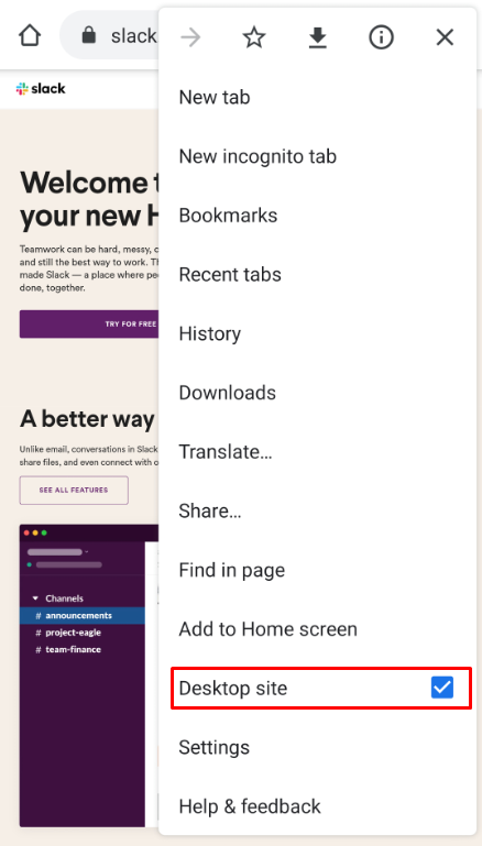 The option to deactivate an account doesn’t exist on the mobile, tablet, or desktop apps. If you try using the Slack desktop app to accomplish this, you’ll be redirected to your default browser, where you’ll be able to deactivate the member’s account. The only way to deactivate a Slack account from a mobile or tablet device is to access it in desktop mode. Before we continue to account deactivation, let’s see how you can access the desktop browser mode on your mobile/tablet device.