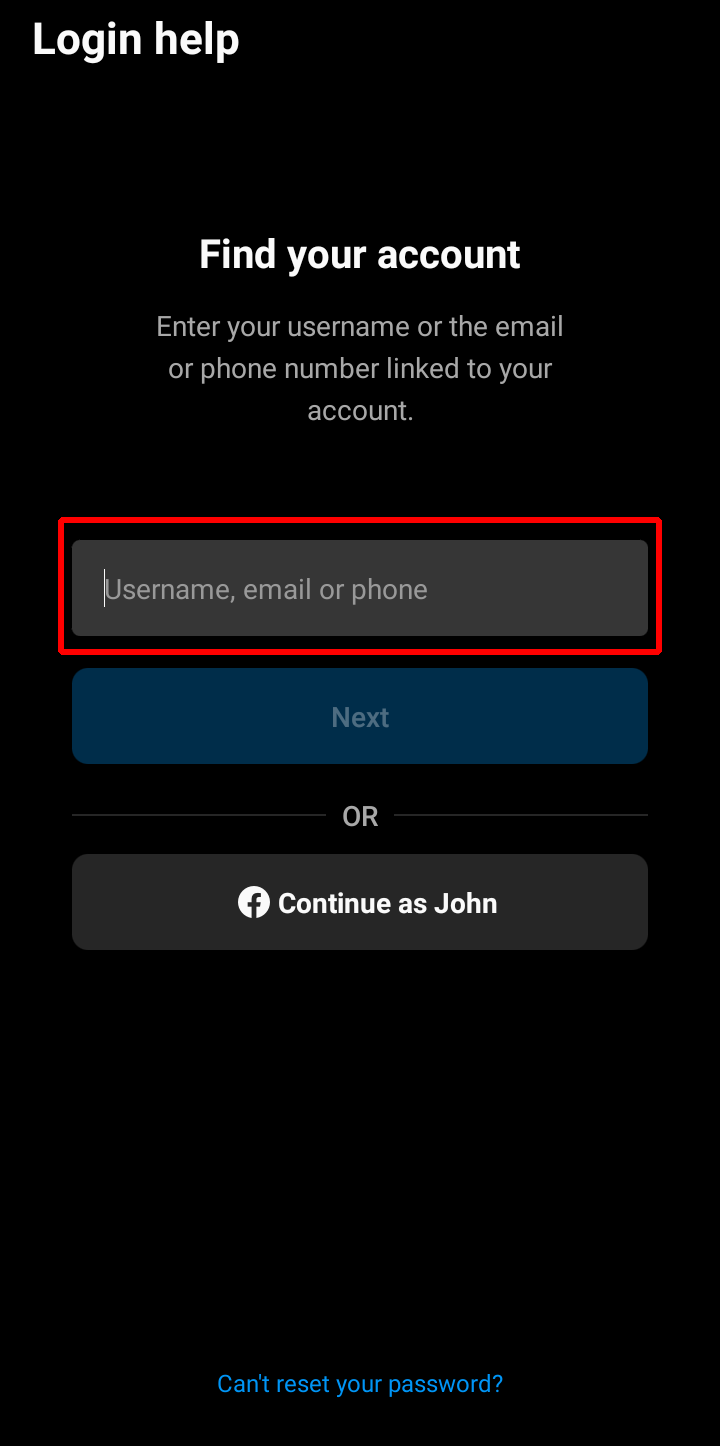 - Make sure you’re in the “Username” tab on the next screen. If you are, you’ll have to enter your username or email address. Make sure you write it correctly and tap Next.