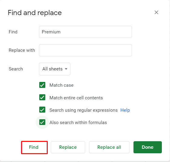- Keep on clicking “Find” until you get to the instance of the word that you’re looking for inside the sheet.
