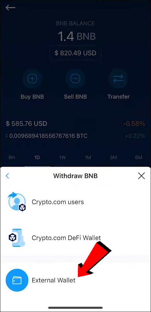 - Your new Metamask wallet should now be available in the Withdraw list on your Crypto.com BNB Balance account. Tap on Withdraw BNB to the right of the wallet address.