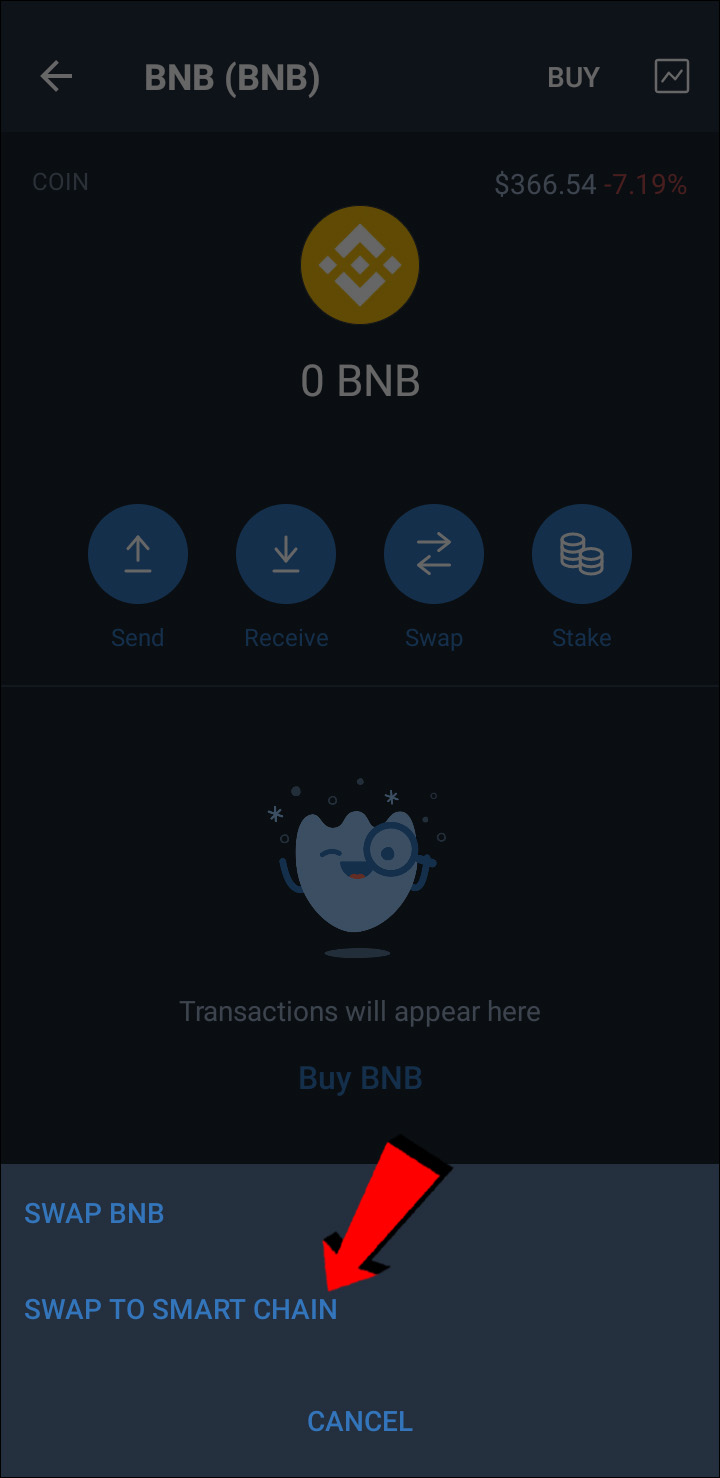 Swap BNB to BNB Smart Chain in your Trust Wallet