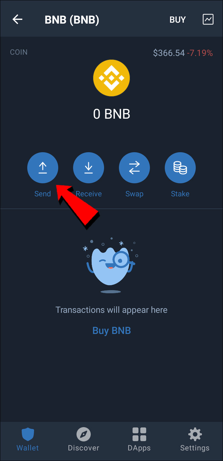 - Under Tokens on the Trust Wallet front page, find the BNB icon, then tap on it.