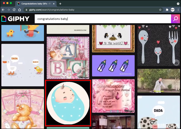 - Go to www.giphy.com and search for the GIF you like. You can use other websites, but know that your GIF may not be delivered as an animated image.