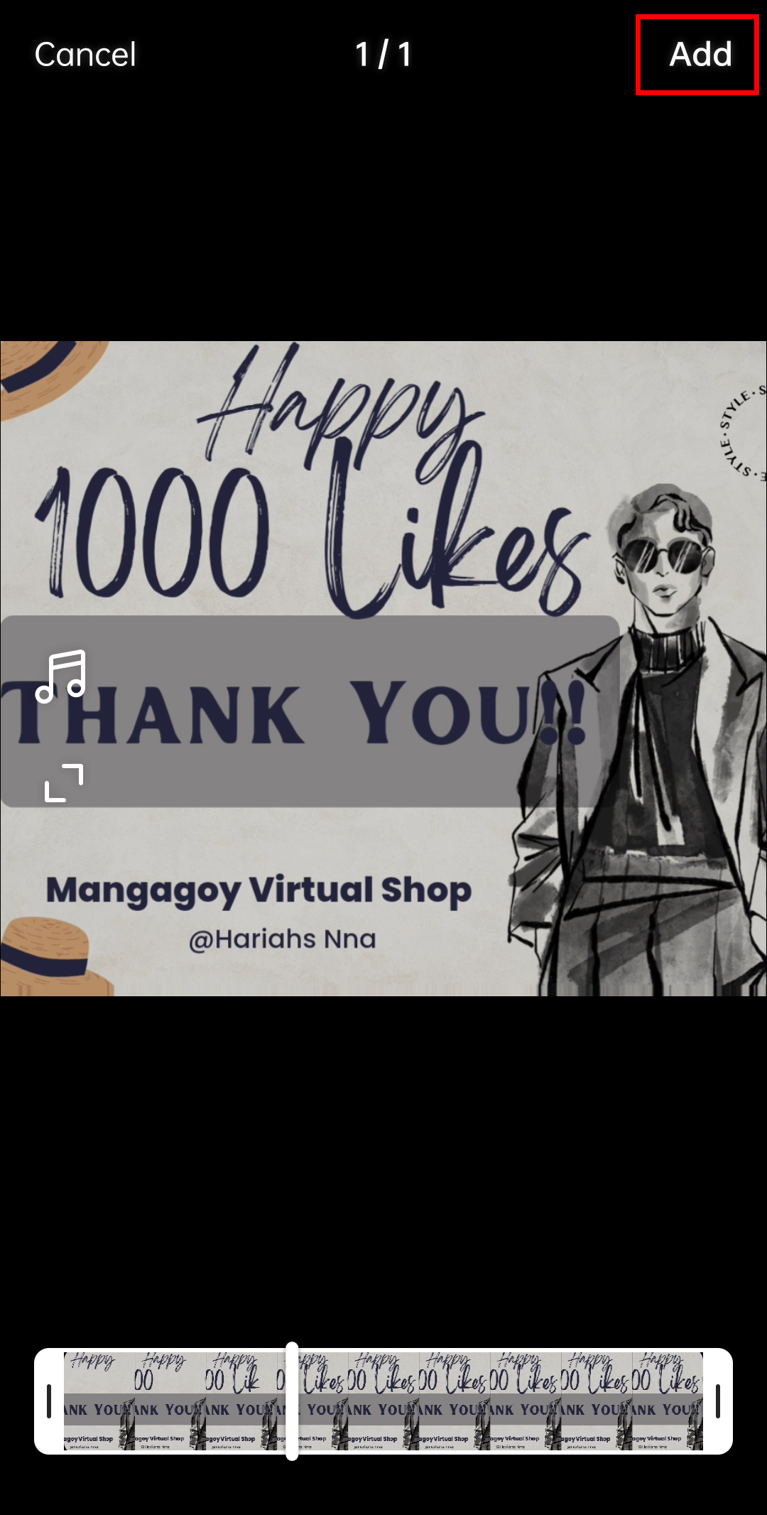 - Next, select the chosen video, then tap “Add” in the video’s upper right-hand corner.