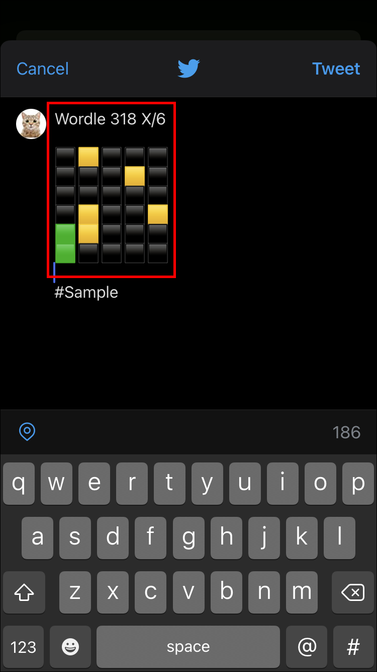 Sharing a Wordle score is very simple. You can also type in any text you want before pasting it as a post. Your friends and followers will get to see you brag (or complain) about your score.