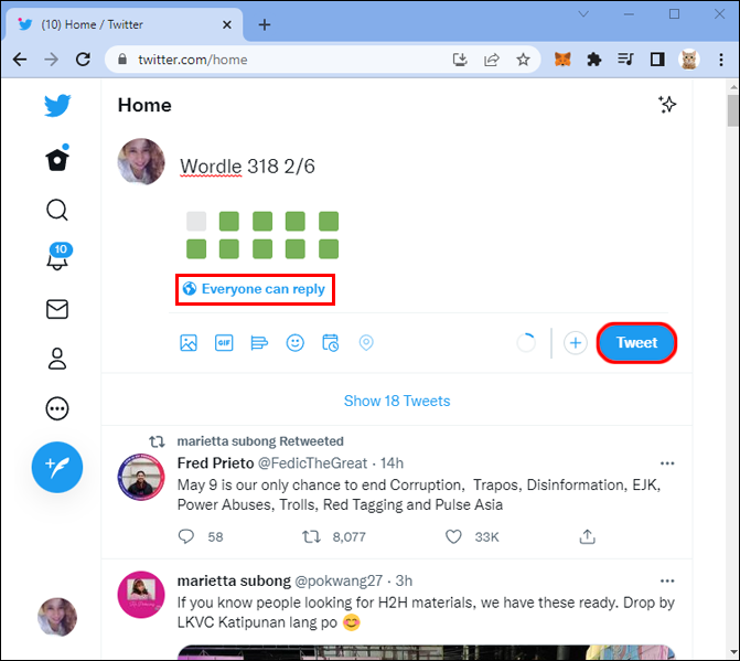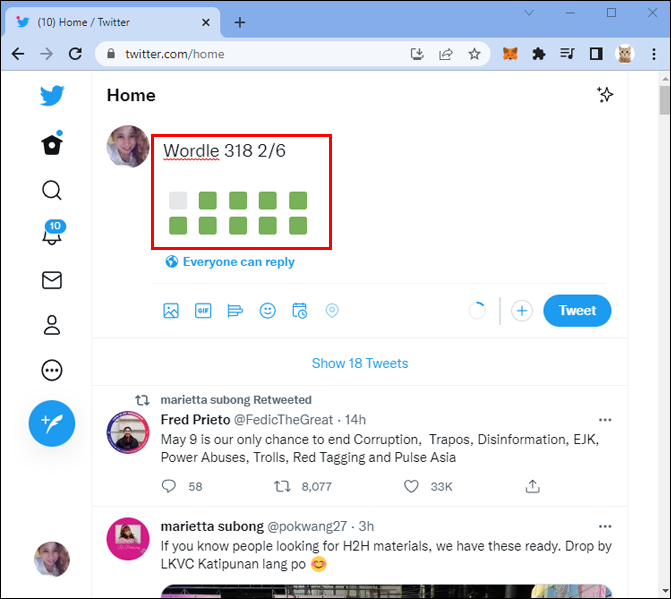Twitter is available on PCs and smartphones, so you can easily share your latest Wordle results anywhere and at any time. Those who have notifications from you enabled will see you post them almost immediately. Here’s how it’s done.