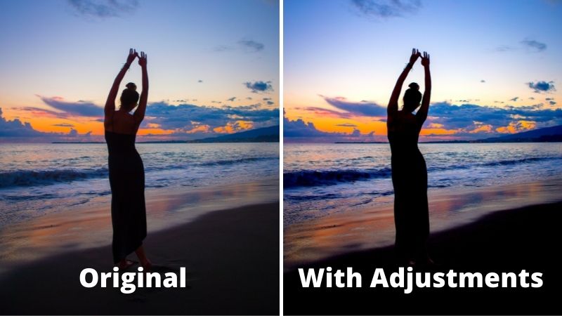 In the images above you can see if you look closely at the image on the left that some of the detail on the woman is still visible. A quick adjustment in Lightroom allowed me to drop the exposure on the woman enough to make her completely a silhouette.