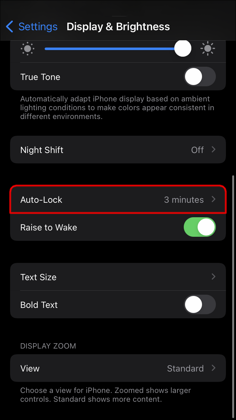 - The “Raise to Wake” option is right under the “Auto Lock.” Toggle the button to “On.”
