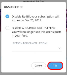 When you attempt to cancel an OnlyFans subscription, the platform gives you two options. You can either disable the automatic re-bill or disable it and unfollow the account. If you choose the former, your subscription will last until the next billing day.