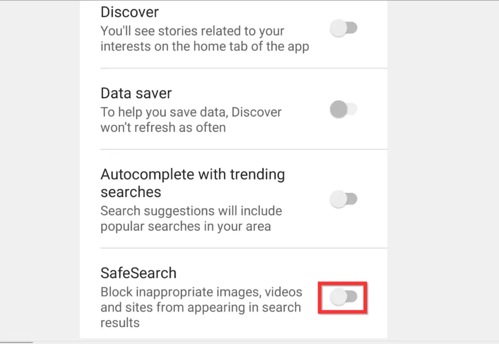 If you do not use Google App for search, here is how you can turn off SafeSearch from your mobile phone’s browser.