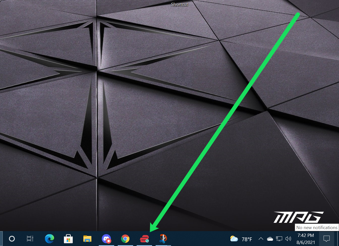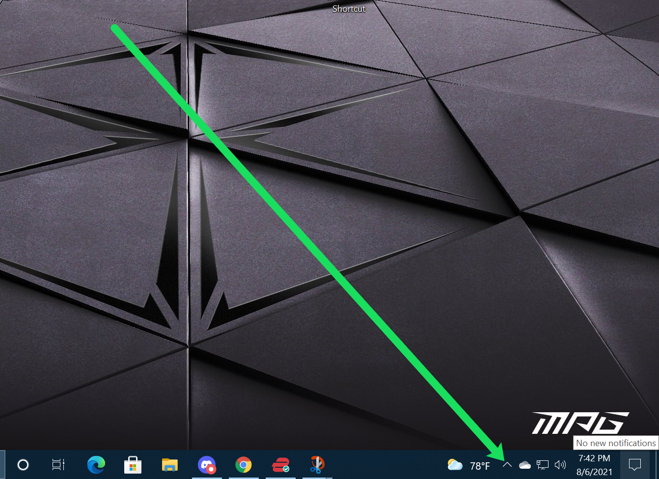 - Select the up arrow next to the Windows Taskbar clock to access running processes.