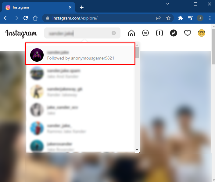 - Go to the search bar at the top of the browser and type the username of the person you want to unfollow.