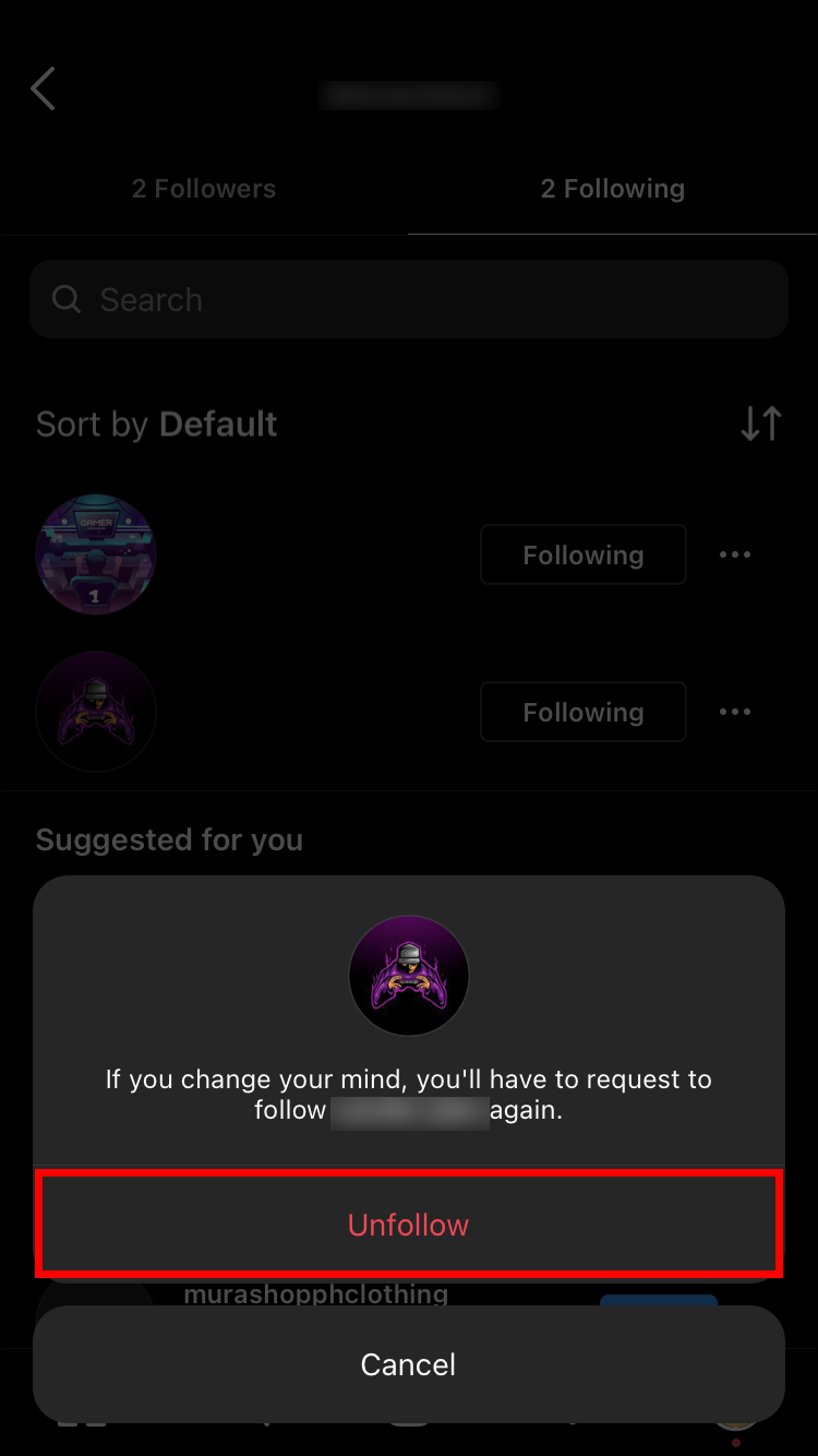 - If you’re attempting to unfollow a private account, a pop-up prompt will ask you to confirm your decision. Press “Confirm” to unfollow the account and if not if you tap “Following” it will change automatically to “Follow”.