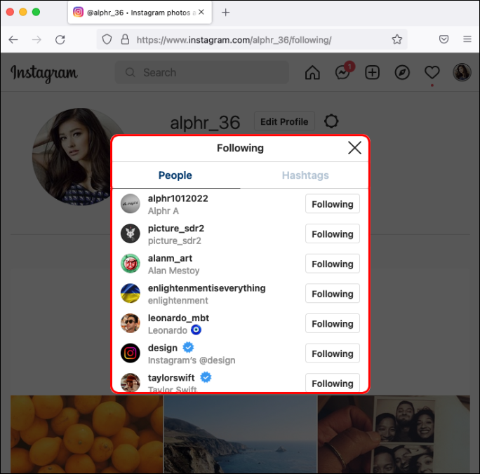 Mac users can also access the Instagram web page and unfollow specific profiles.