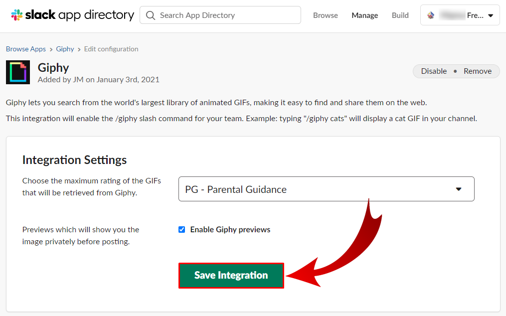 Suppose you want to manage GIPHY within your Slack workspace, disable it temporarily or even remove it from the tool. In that case, you can do it by following these instructions.
