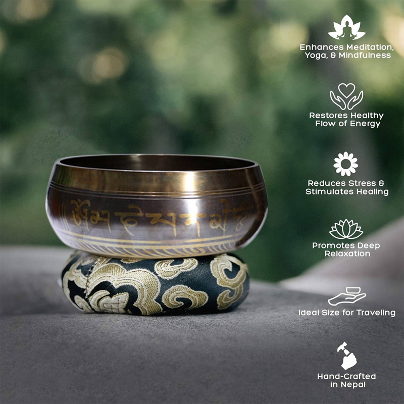 Lastly, it gained popularity for meditation because it can help one get into deep relaxation. You can achieve this by holding the bowl and mullet in your hands and moving the mullet around the edge in a clockwise direction. The harmonising sound from the vibrating bowl will make you feel more relaxed.