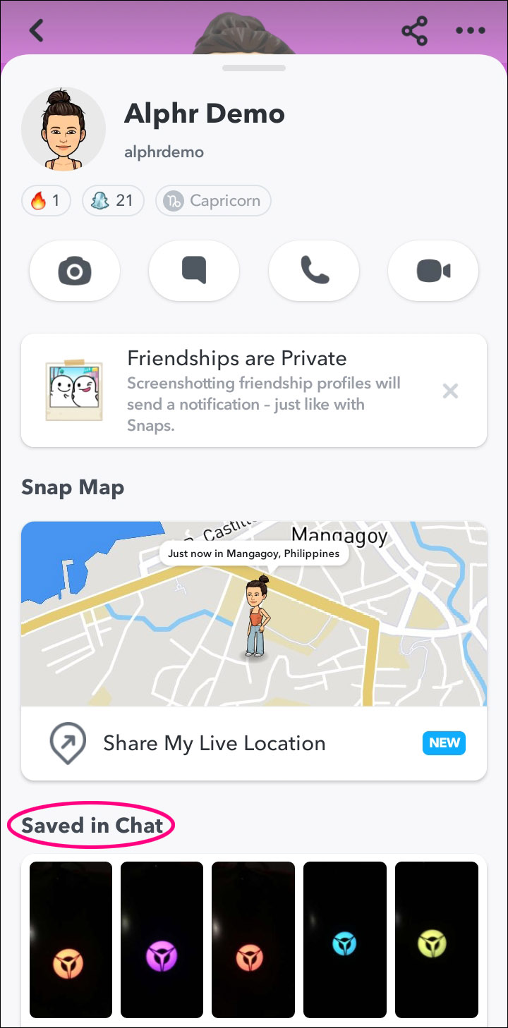 If you want to view saved snaps sent to you by other Snapchat users, you’ll need to go to your friendship profile, and you’ll find them there.