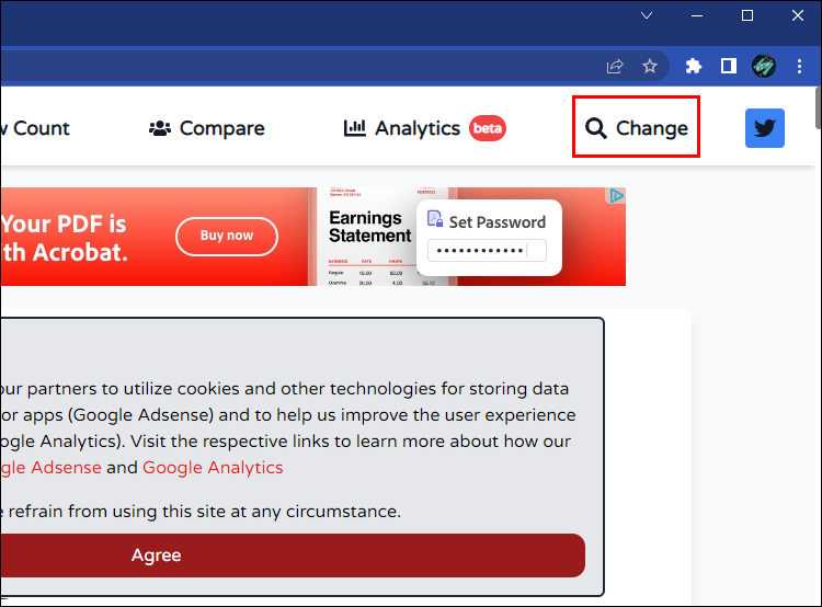 - Navigate to the upper-right of the interface and click on the “Change” button. The action will generate a new page.