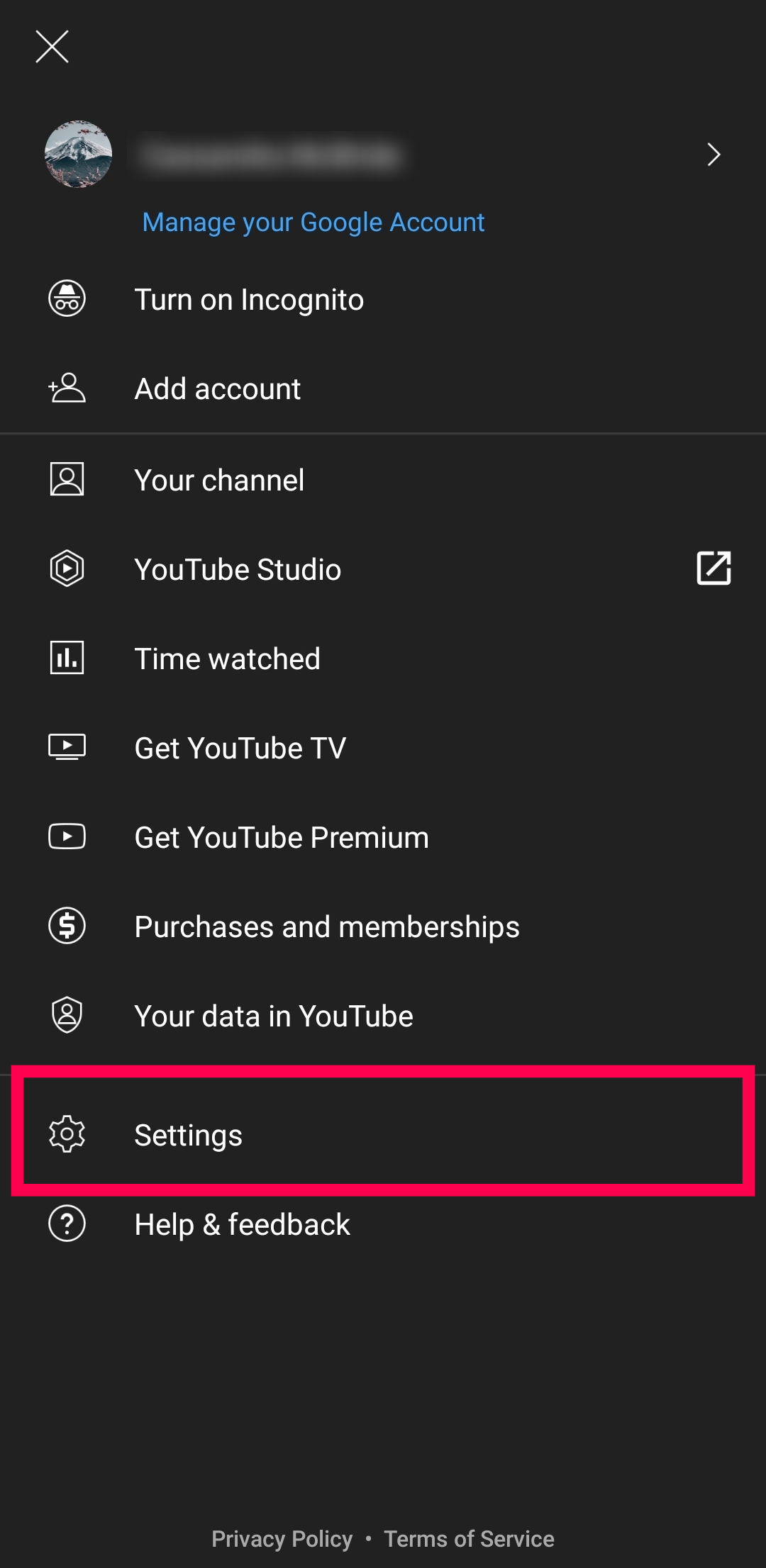 - Choose “Your data in YouTube” from the list.
