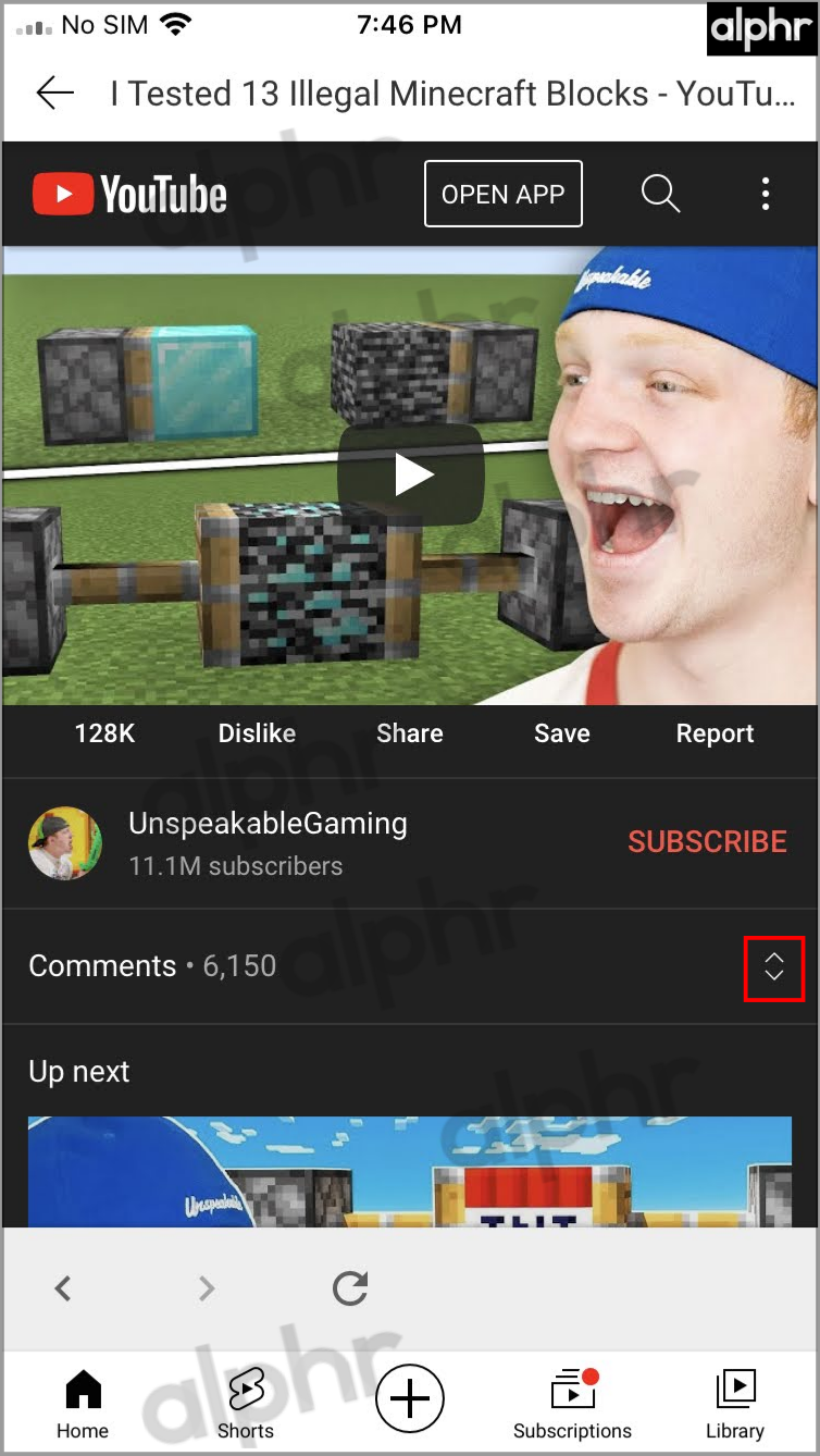 - Tap on the “up/down arrowheads icon” (expander) to open the comments section.