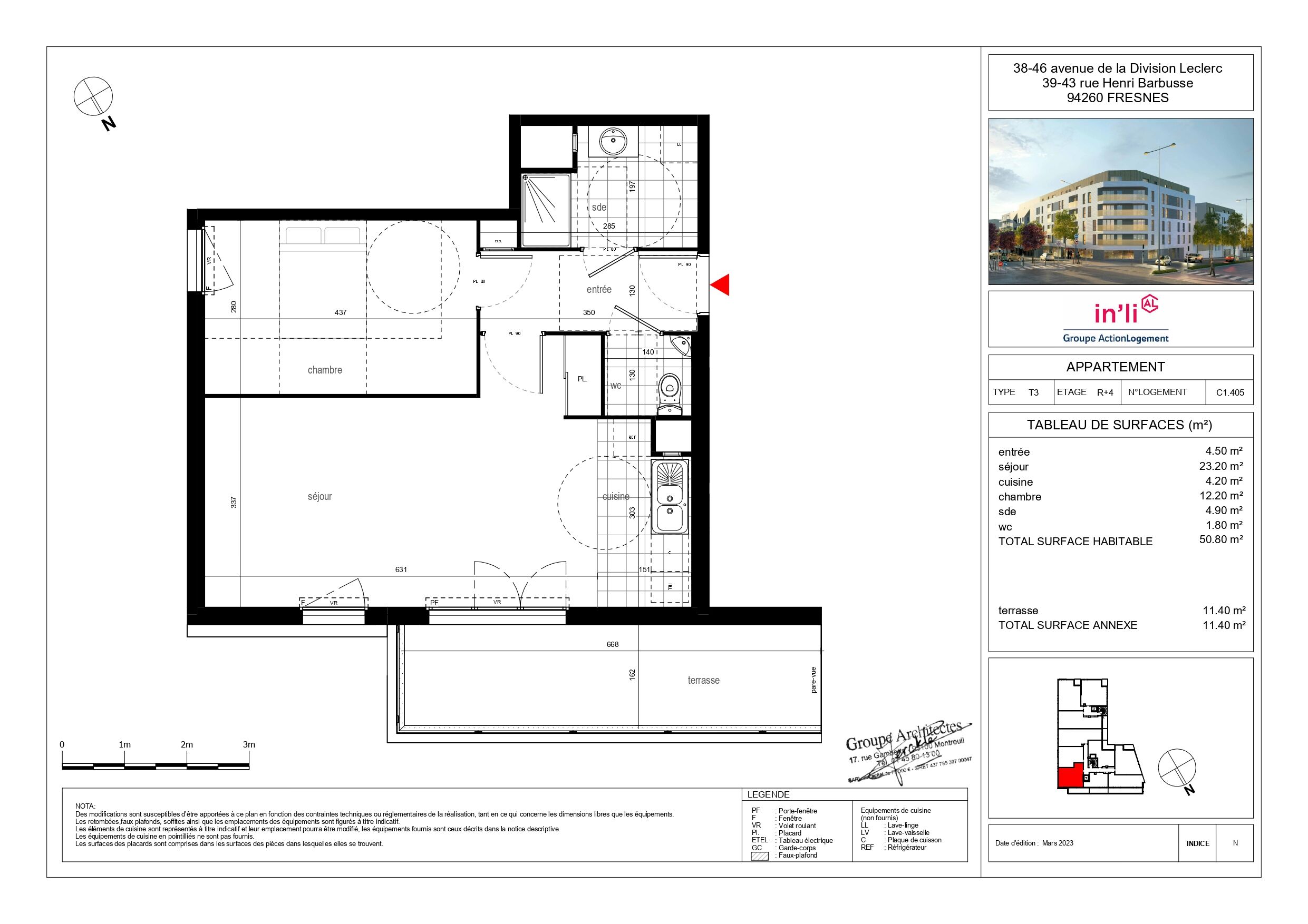 1098 €cc Appartement · 2 pièces · 50.9 m²FRESNES