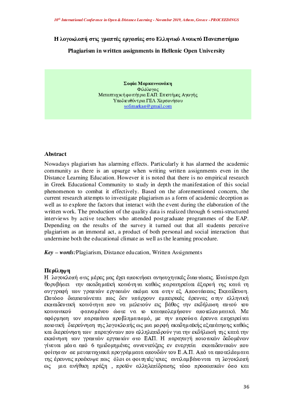 Η ΛΟΓΟΚΛΟΠΗ ΣΤΙΣ ΓΡΑΠΤΕΣ ΡΓΑΣΙΕΣ ΣΤΟ EΛΛΗΝΙΚΟ ΑΝΟΙΚΤΟ ΠΑΝΕΠΙΣΤΗΜΟ