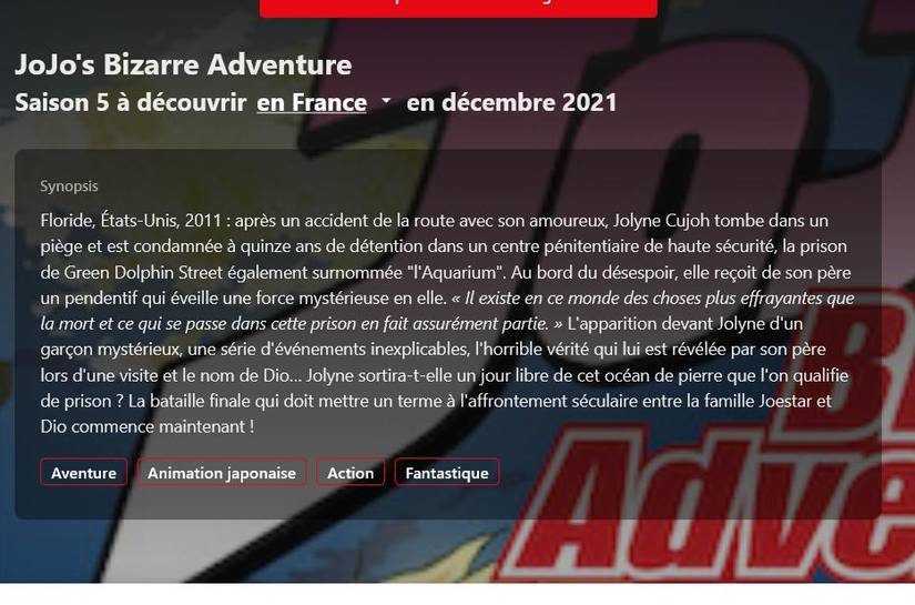 On October 9, several JoJo fans on social media noted Netflix updated the listing on its media center. Previously, it stated that JoJo Part 6 will have each new episode streamed "monthly".