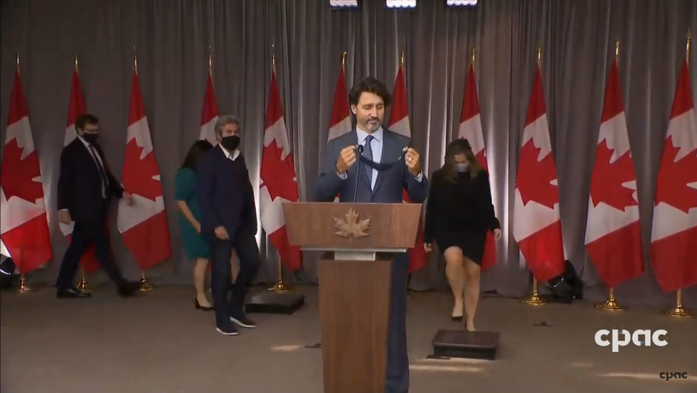 During a press conference on September 16, the Prime Minister was joined by members of his cabinet including Chrystia Freeland, Mary Ng and Pablo Rodriguez.