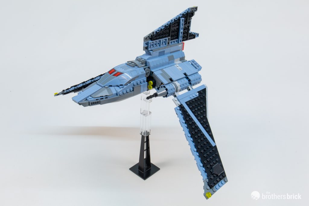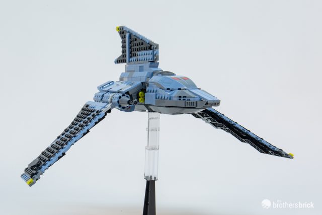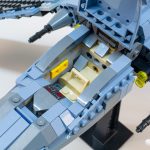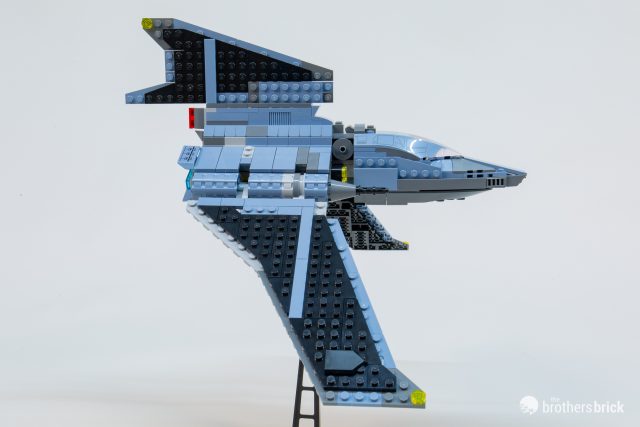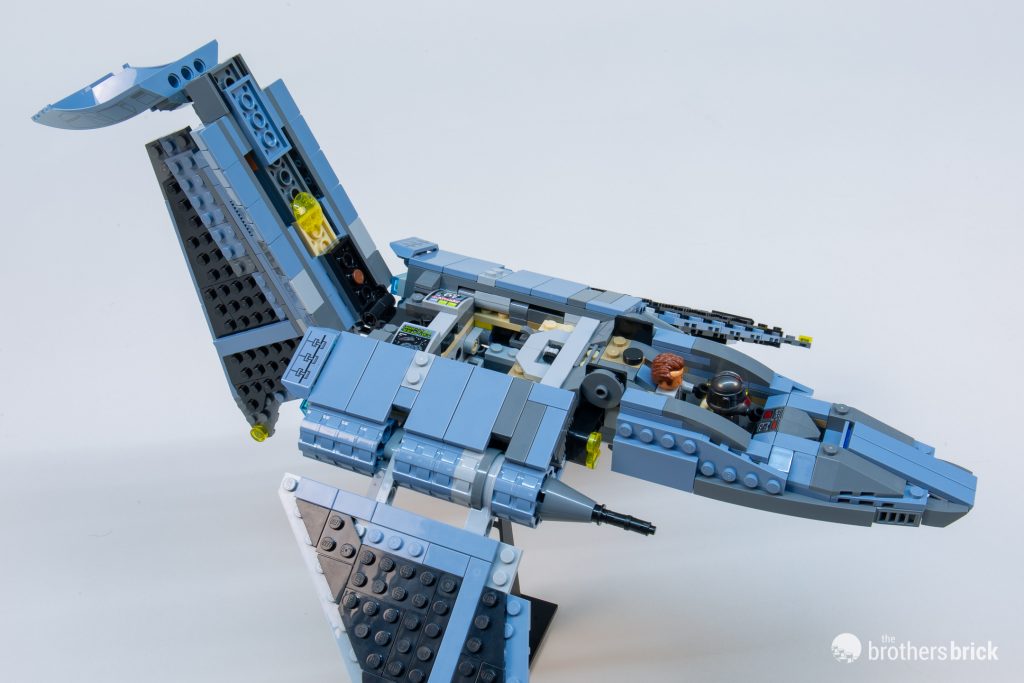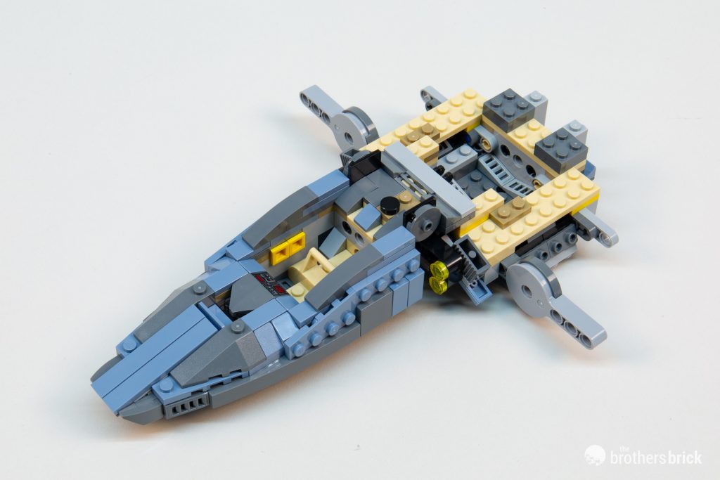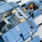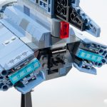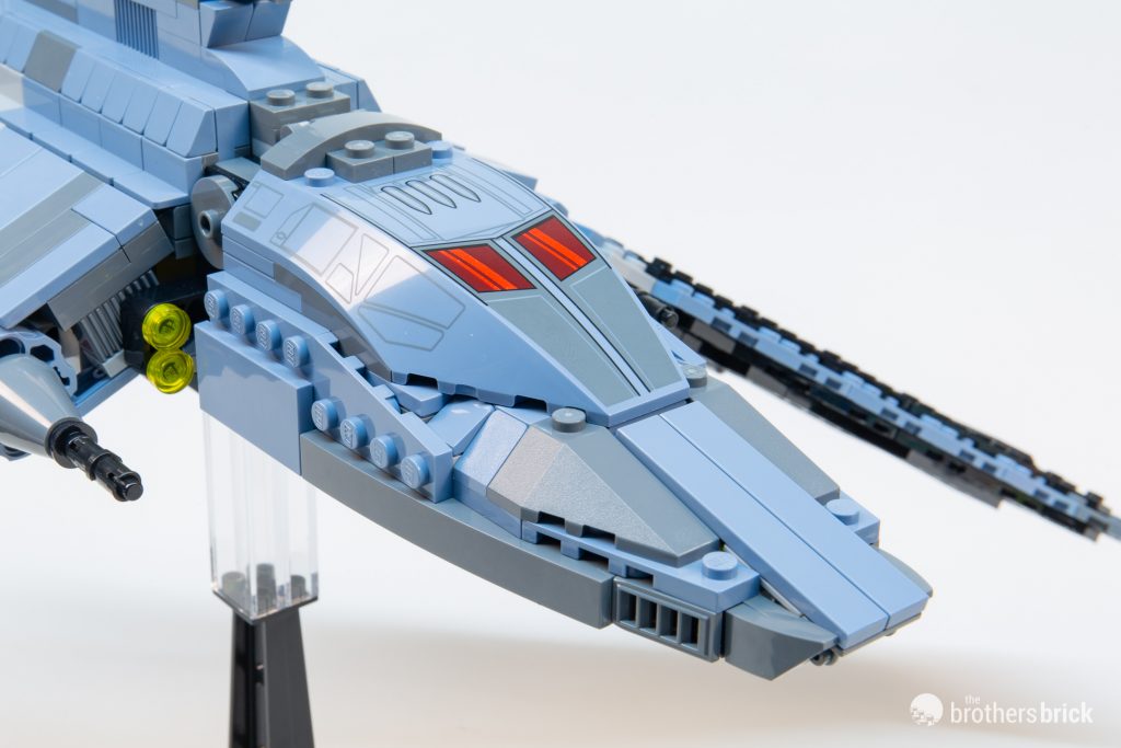 However, one of the most egregious differences between this LEGO version and its animated inspiration is the cockpit canopy. On the show, the cockpit certainly doesn’t open (with the hatch on the side), with the forward viewports inset into the angled nose and divided by a vertical section.