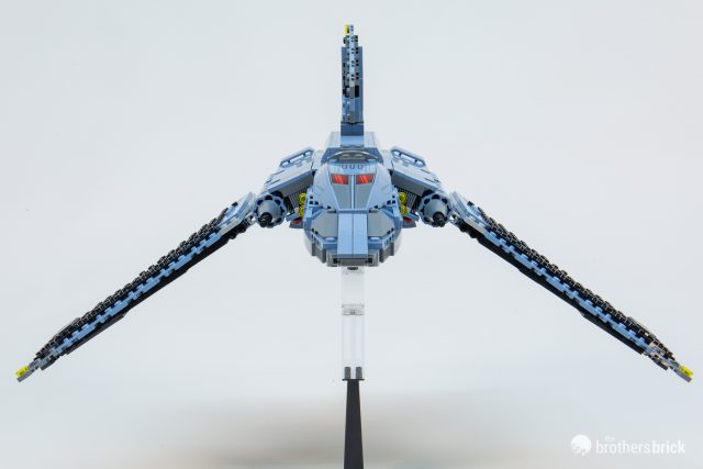 LEGO Star Wars set designers have mastered the art of recreating the complex angles of rear engines, making the back end of the Bad Batch shuttle a lot prettier than its face.