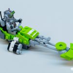 These two minifigs also come with hair pieces and have dual-sided heads. Tech’s helmet is one of the craziest pieces of dual-molded LEGO we’ve ever seen, with light and gray plastic and multi-color printing for additional details.