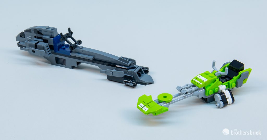 My critique of the shuttle’s scale and lack of detail is compounded by the inclusion of two speeder bikes in the set. These undeniably add playability for younger builders, but like so many LEGO Star Wars speeder bikes, they’re absolutely huge, built from a significant proportion of the set’s overall part count. I really wonder how much better the shuttle itself might have been if the number of parts used to build these massive speeder bikes had been used to add detail or scale to the main vehicle.
