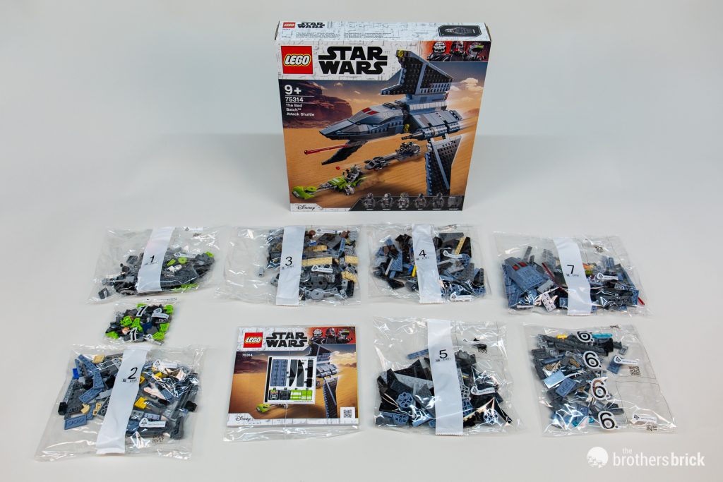 LEGO Star Wars 75314 The Bad Batch Attack Shuttle includes 969 pieces with 5 minifigures and will be available beginning August 1st, 2021 from the LEGO Shop online (US $99.99 | CAN $139.99 | UK £89.99) and elsewhere.