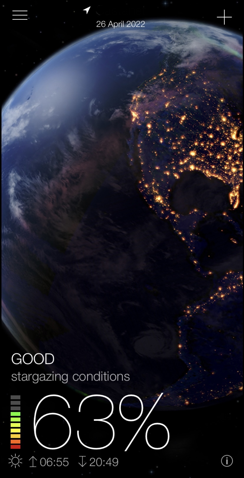 Connaître les conditions d'observation de la soirée, rien de plus simple grâce à SkyLive, fonctionnant grâce à la géolocalisation. © SkyLive