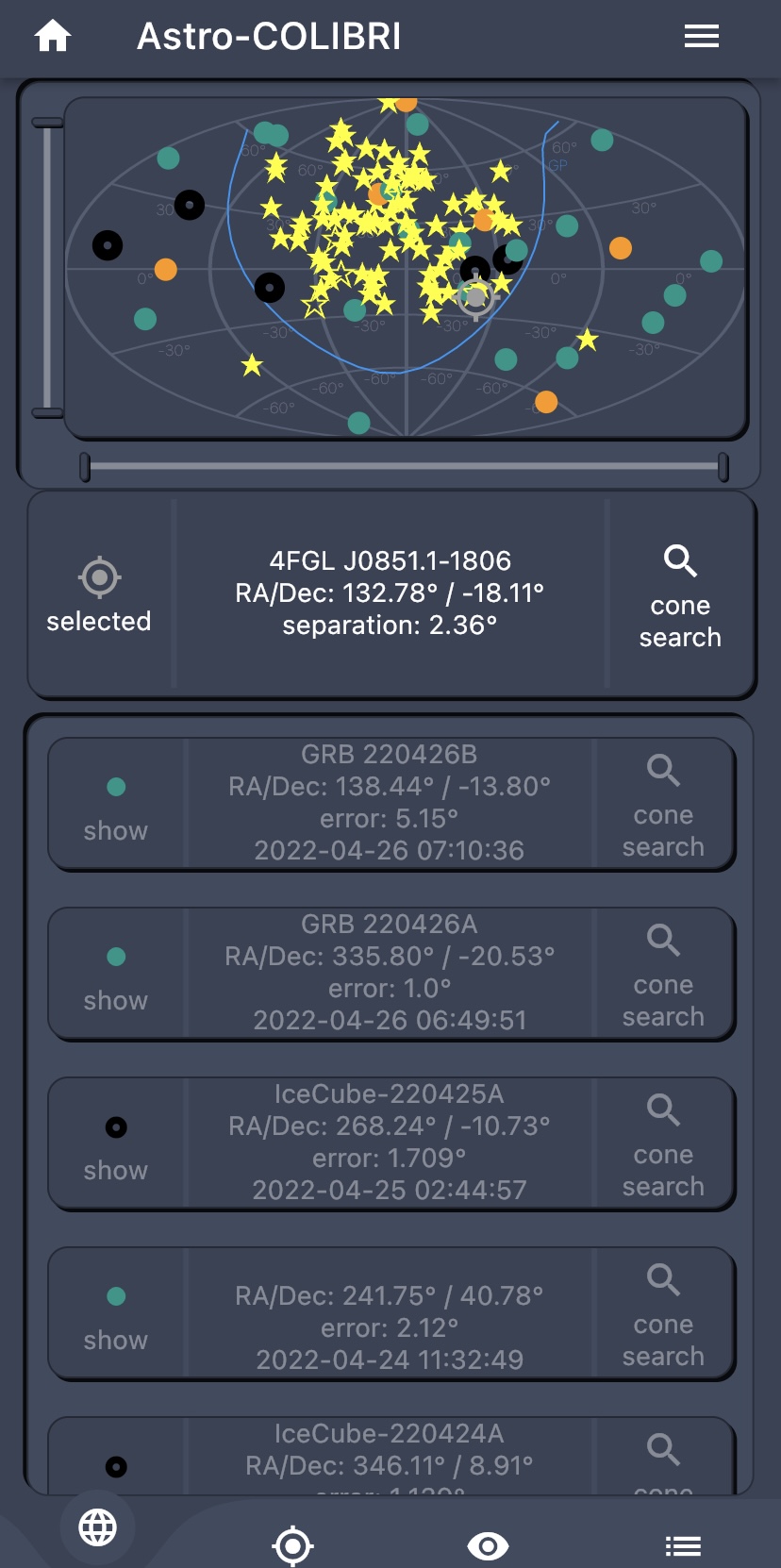 L'application pour astronomes confirmés et professionnels : Astro-Colibri