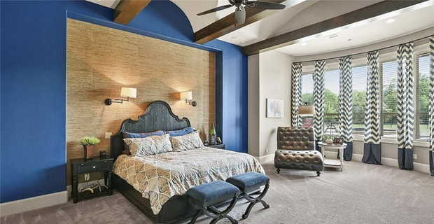 Prescott's master bedroom is vast, featuring oversized windows and a custom fire place. We're guessing through that doorway on the left is an oversized closet filled with apparel, suits and some of Prescott's sneaker collection.