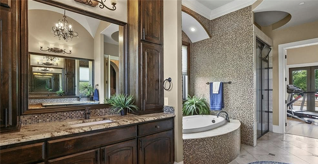The master bath is custom-built, highlighted by a jetted tub, a steam shower, a private exercise room and sitting area that leads into the backyard of mass acreage. For post-game relaxation, this is the spot for Prescott after shining under the lights at AT&T Stadium.