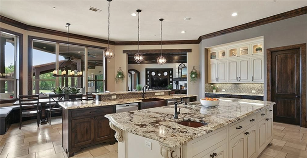 Multiple islands, an in-set bar faucet and stainless steel appliances adorn a kitchen area fit for a king. How much cooking does Prescott actually do here? With his current contract, chances are the quarterback's personal chef makes great use of a beautiful and well-designed space.