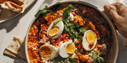 Fuul Mudammas (Stewed Fava Beans with Eggs and Feta)