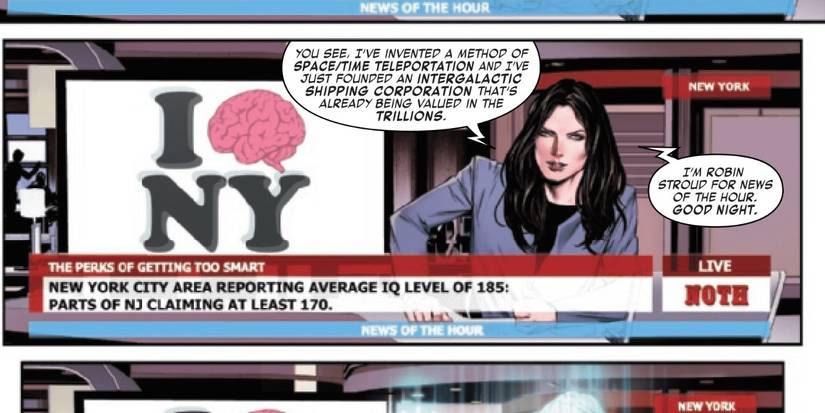 As a side effect of Stark's actions, the people gifted with this intelligence also act more like Stark in that they have hubris, but his cool and confident demeanor tempers it. This is best shown by a news reporter who thinks she's better with her job after creating a new method of space/time teleportation. As a result, Stark's citywide upgrade makes people more unpredictable than ever with incalculable genius to boot. That said, this instance of intelligence getting out of hand is one in a long list of moments that show how genius-level ideas are equally good and dangerous for the Marvel Universe.