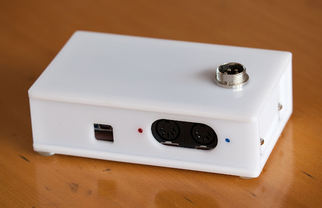 The receiver unit showing the USB power socket, MIDI connections and Joystick socket on the top.