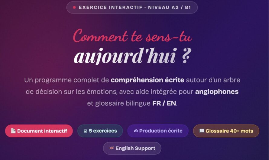 App Iphone Articles capsule vidéo classe inversée compréhension orale compréhension écrite conjugaison DELF Documents authentiques Eaxmens DELF et DALF exercices Formation FLE Français des affaires grammaire HTML5 jeux la rentrée scolaire Niveau A1 Niveau A2 Niveau B1 Non classé Noël phonétique Pour enfants primaire Publications Saint-Valentin smartphones tablettes TBI TNI vocabulaireTag » Apprendre Fle En Ligne